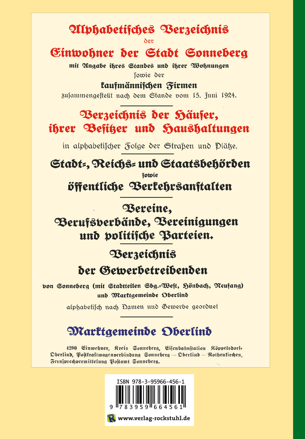 • Verzeichnis der Gewerbetreibenden von Sonneberg (mit Stadtteilen Sbg-West, Hönbach, Neufang) und Marktgemeinde Oberlind alphabetisch nach Namen und Gewerbe geordnet