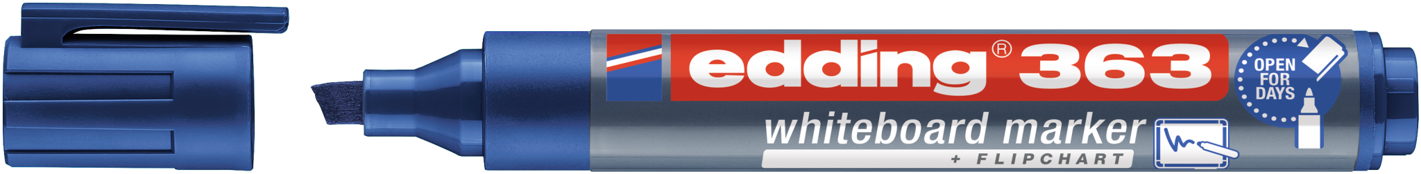 Wenn die Kappe nicht wieder auf den Marker gesetzt wird, würde er dann austrocknen, nur schwer oder überhaupt nicht mehr schreiben? Wenn Whiteboardmarker täglich zum Einsatz kommen, sind das alles relevante Fragen. Für den edding 363 Whiteboardmarker sind sie zum Glück aber alle irrelevant, denn er kann mehrere Tage ohne Kappe liegen bleiben, ohne auszutrocknen. Zudem hinterlassen seine Beschriftungen nach dem trockenen Abwischen keinerlei Rückstände.