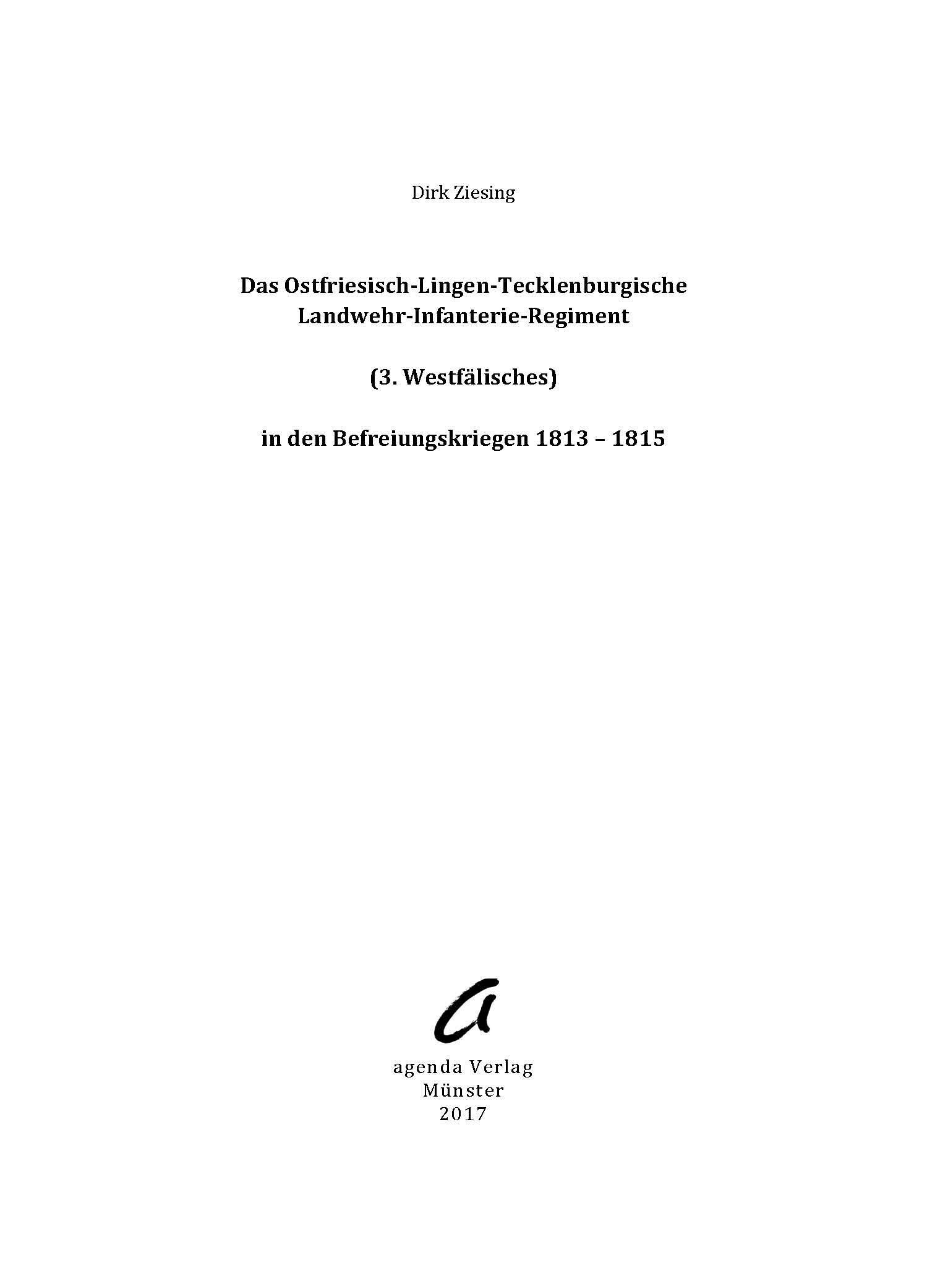 Das 3. Westfälische Landwehr-Infanterie-Regiment wurde im Herbst 1813 in Ostfriesland und den ehemaligen Grafschaften Lingen und Tecklenburg aufgestellt. 1815 gehörte es in der entscheidenden Phase der Befreiungskriege zu der preußischen Armee unter Marschall Blücher, die gemeinsam mit Wellingtons Truppen das Schicksal des Franzosenkaisers Napoleon besiegelte. Die Rückkehr und Auflösung des Regiments fiel zusammen mit der Abtretung Ostfrieslands und der Niedergrafschaft Lingen an das Königreich Hannover. Das vorliegende Buch schildert die Einzelschicksale und weiteren Lebenswege zahlreicher Kriegsteilnehmer, und es ist dem Andenken der Opfer gewidmet. Hierbei bilden die in den Heimatkirchen angebrachten Gedenktafeln für Gefallene und Heimkehrer einen besonderen Schwerpunkt. Der Autor Dirk Ziesing, promovierter Ingenieur, ist seit vielen Jahren als Historiker und Sachverständiger in der Militärgeschichte und der Waffentechnik tätig.
