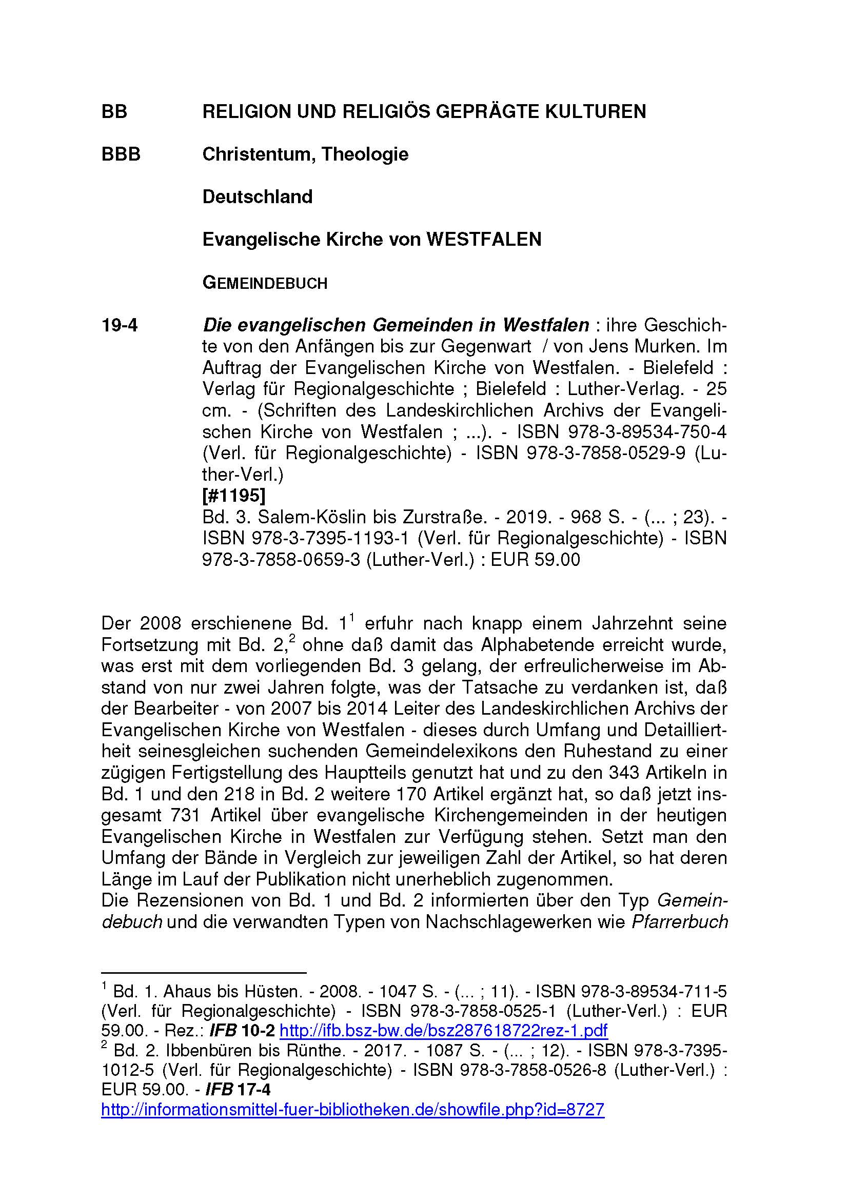Weiterführende Links zu "Die evangelischen Gemeinden in Westfalen - Band 3"