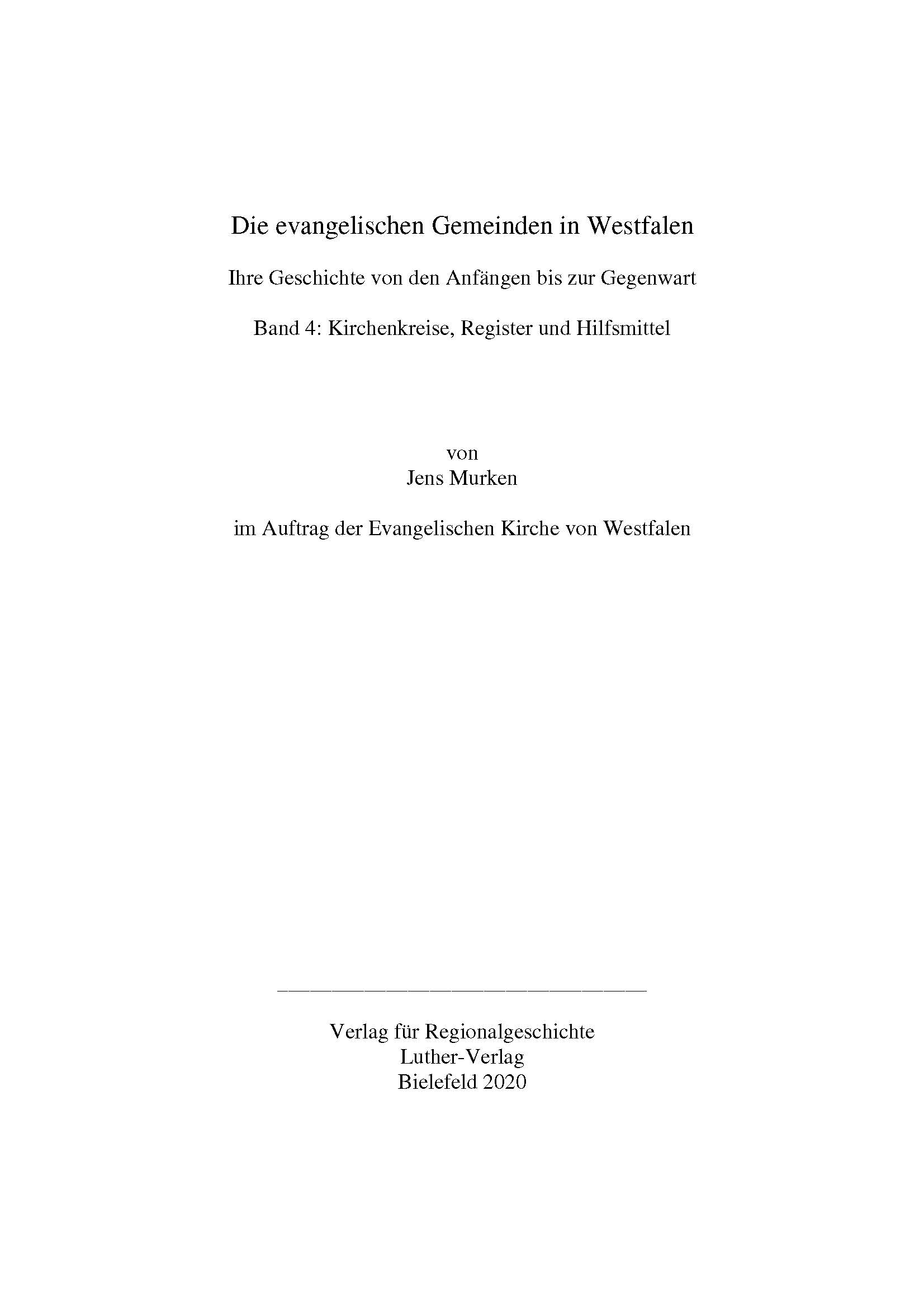 Der vorliegende Band 4 beinhaltet eine kurzgefasste Geschichte (und Vorgeschichte) der westfälischen Kirchenkreise in ihren historischen Territorien und in ihrem heutigen Zuschnitt innerhalb der Evangelischen Kirche von Westfalen. Zugleich enthält dieser Abschlussband des Westfälischen Gemeindebuches ausführliche Gesamtregister zu Personen, Orten und Sachbegriffen aller Bände, sowie Karten und weitere Hilfsmittel, um die Nutzung und Auswertung des Gesamtwerkes zu erleichtern.